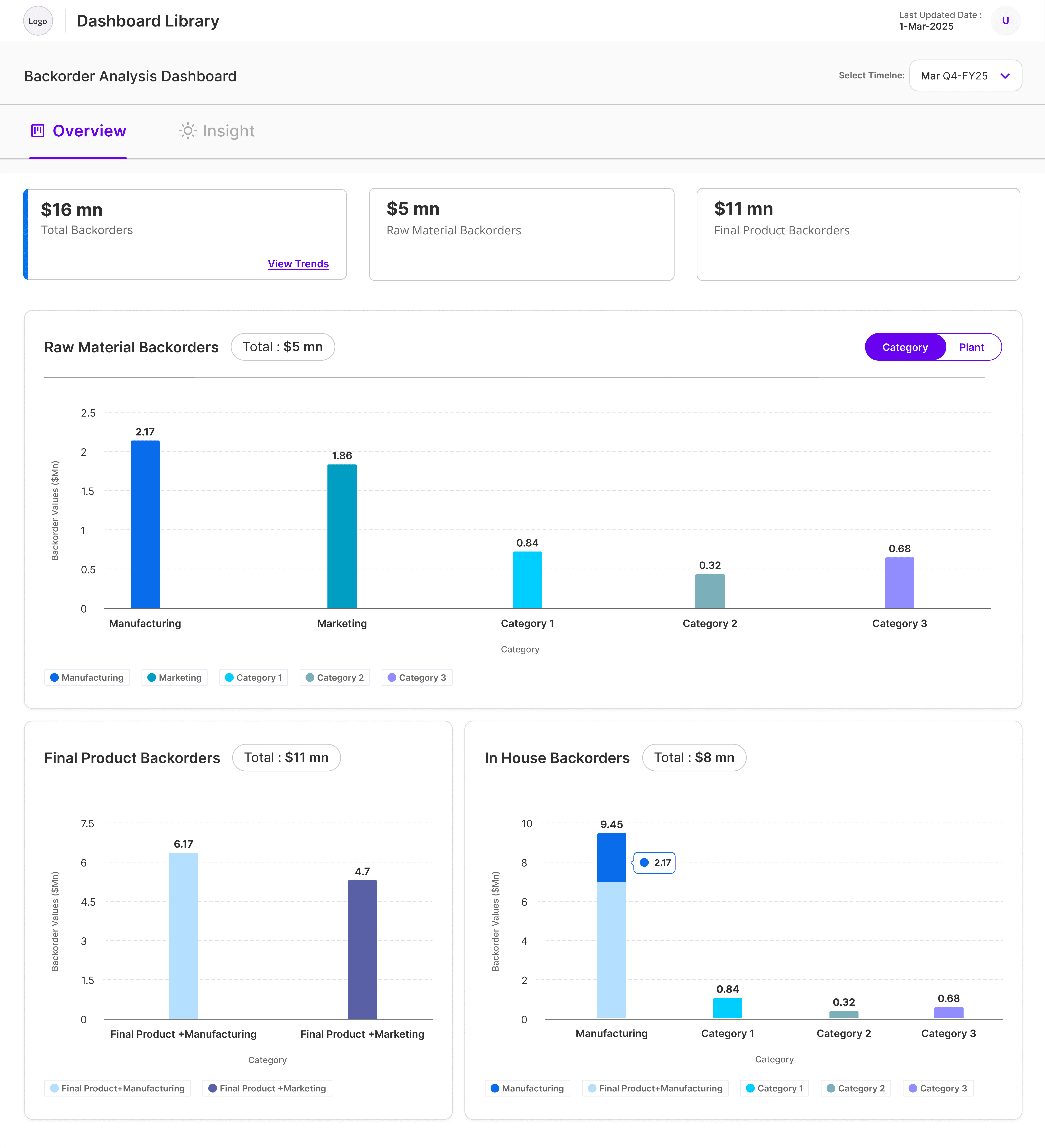 A dashboard to track monthly backorders and visualize insights in a clear, meaningful way.